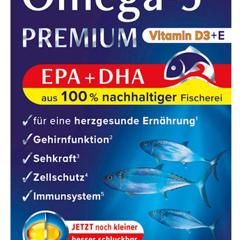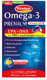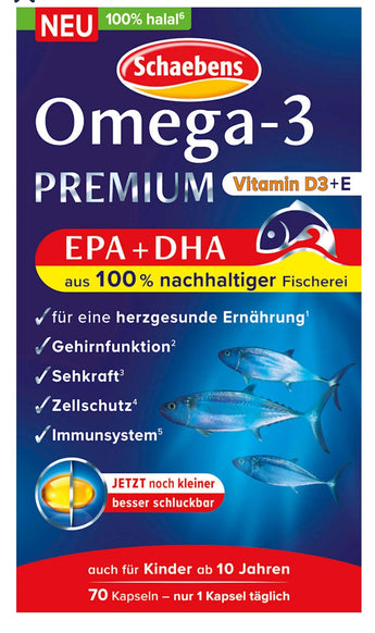تحتوي كبسولات Omea-3 Premium من Schaebens على EPA وDHA. والذي يأتي من مصايد الأسماك المستدامة بنسبة 100٪. كما أن الكبسولات سهلة البلع ومناسبة للأطفال بعمر 10 سنوات فما فوق.