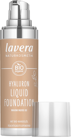 Die Hyaluron Liquid Foundation 03 Warm Nude von lavera ist für jeden Hauttypen geeignet und sorgt für ein ebenmäßiges Hautbild. Dank der veganen Formulierung mit natürlicher Hyaluronsäure und Bio-Mandelöl wird Ihr Teint mit wertvoller Feuchtigkeit versorgt und vor dem Austrocknen bewahrt. Zudem kaschiert die mittlere Deckkraft kleine Hautunreinheiten und lässt dunkle Schatten, Rötungen im Nu verschwinden. Durch die seidig-leichte Textur verschmilzt die Foundation schwerelos mit Ihrer Haut und hinterlässt ein angenehmes Gefühl. Ein unerwünschter Maskeneffekt wird so effektiv verhindert. Die zertifizierte Naturkosmetik ist überdies frei von Silikon, Mineralöl und Mikroplastik. Für einen strahlend frischen Teint – auch bei sensibler Haut.