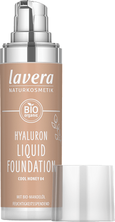 Die Hyaluron Liquid Foundation 04 Cool Honey von lavera ist für jeden Hauttypen geeignet und sorgt für ein ebenmäßiges Hautbild. Dank der veganen Formulierung mit natürlicher Hyaluronsäure und Bio-Mandelöl wird Ihr Teint mit wertvoller Feuchtigkeit versorgt und vor dem Austrocknen bewahrt. Zudem kaschiert die mittlere Deckkraft kleine Hautunreinheiten und lässt dunkle Schatten, Rötungen im Nu verschwinden. Durch die seidig-leichte Textur verschmilzt die Foundation schwerelos mit Ihrer Haut und hinterlässt ein angenehmes Gefühl. Ein unerwünschter Maskeneffekt wird so effektiv verhindert. Die zertifizierte Naturkosmetik ist überdies frei von Silikon, Mineralöl und Mikroplastik. Für einen strahlend frischen Teint – auch bei sensibler Haut.