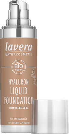 Die Hyaluron Liquid Foundation 05 Natural Beige von lavera ist für jeden Hauttypen geeignet und sorgt für ein ebenmäßiges Hautbild. Dank der veganen Formulierung mit natürlicher Hyaluronsäure und Bio-Mandelöl wird Ihr Teint mit wertvoller Feuchtigkeit versorgt und vor dem Austrocknen bewahrt. Zudem kaschiert die mittlere Deckkraft kleine Hautunreinheiten und lässt dunkle Schatten, Rötungen im Nu verschwinden. Durch die seidig-leichte Textur verschmilzt die Foundation schwerelos mit Ihrer Haut und hinterlässt ein angenehmes Gefühl. Ein unerwünschter Maskeneffekt wird so effektiv verhindert. Die zertifizierte Naturkosmetik ist überdies frei von Silikon, Mineralöl und Mikroplastik. Für einen strahlend frischen Teint – auch bei sensibler Haut.