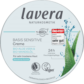 Die basis sensitiv Allzweckcreme mit Bio-Aloe Vera & Bio-Mandelöl von Lavera wurde speziell für sehr trockene Haut entwickelt. Die milde Formel verwöhnt sehr trockene Haut 24h mit intensiver Feuchtigkeit und langanhaltender Pflege, außerdem schützt sie vor dem Austrocknen. Die biologisch abbaubare Rezeptur ist zudem ohne Mineralöle und ohne künstliche Duft-, Farb- und Konservierungsstoffe (gem. EU-Kosmetik VO) hergestellt. Deckel und Tiegel sind recyclingfähig.