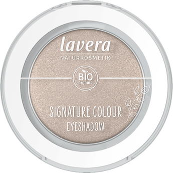 Mit dem lavera Signature Colour Eyeshadow in der satin Nuance Moon Shell 05 - ein zarter Nude Ton mit silbernem Shimmer - lassen sich atemberaubende Looks kreieren. Die cremige Textur des hochpigmentierten Eyeshadows lässt sich mühelos auftragen und nahtlos verblenden. Mineralische Farbpigmente sorgen für intensive Farbabgabe und extra langen Halt, ohne sich in der Lidfalte abzusetzen. Die Formel mit hochwertigen Inhaltsstoffen wie Bio-Mandelöl und Vitamin E pflegt die sensiblen Augenlider.