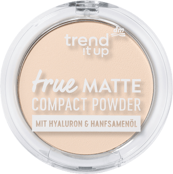 Das True Matte Compact Powder 015 light beige von trend !t up hat eine seidig weiche Textur und verleiht dem Teint ein perfektes Aussehen und ein samtig schönes Hautgefühl. Die glättenden Inhaltsstoffe Hyaluron und Bio-Hanfsamenöl schenken der Haut ein angenehmes und weiches Gefühl.