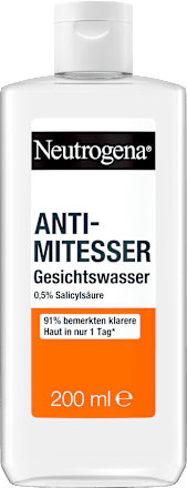 Das Anti-Mitesser Gesichtswasser von Neutrogena ist ein öl- und silikonfreies Produkt, das die Haut klärt und dabei hilft, Mitesser verursachenden Schmutz und überschüssigen Talg aus den Poren zu entfernen. Es hat einen angenehmen Geruch, hinterlässt ein weiches Hautgefühl und beugt der Bildung von Pickeln vor. Das Gesichtswasser ist auch für empfindliche Haut geeignet und kann bereits ab dem ersten Tag der Anwendung sichtbare Ergebnisse liefern.