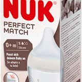 Die Perfect Match Babyflasche aus Glas von NUK hat ein Fassungsvermögen von 120 Millilitern und eignet sich für Babys ab der Geburt. Dank des weichen und elastischen Materials schmiegt sich der Sauger sanft an die Lippen und Gaumen des Babys. Durch die fließende Saugerform hat das Fläschchen aus hochwertigem Glas eine Anti-Kolik-Funktion und sorgt für einen ruhigen und natürlichen Trinkfluss. Dabei gibt die breite und weiche Lippenauflage dem Säugling ein vertrautes, hautähnliches Gefühl.