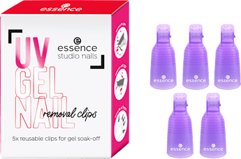 To remove UV nail polish, open the essence studio nails UV GEL NAIL removal clips 01 hold me tight and place a lint-free pad soaked in nail polish remover into the clip. Press the clip firmly onto the nail and wait until the nail polish remover has penetrated. Repeat the process for each nail.