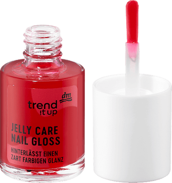 The Nail Care Jelly Care Gloss 010 Bright Berry Red from trend !t up impresses with its light texture, offering delicate color release and buildable coverage. Enriched with 0.09% nourishing and nail-hardening hexanal as well as fermented berry extract, this gloss not only provides a beautiful shine but also intensely cares for the nails.