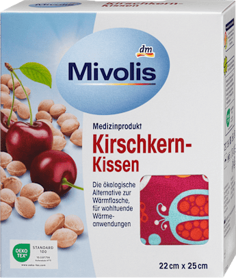 La almohadilla de hueso de cereza Mivolis se fabrica con el mayor cuidado en Alemania. El producto ha sido probado para detectar sustancias nocivas y cumple con el Standard 100 by OEKO-TEX®, clase de producto 1.