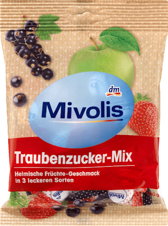 Mivolis mezcla de dextrosa en tres sabores de frutas tiene un sabor refrescante y delicioso, y es ideal para llevar.