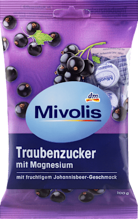 Las tabletas de dextrosa Mivolis con magnesio tienen un delicioso sabor afrutado a grosella negra y son ideales para llevar.