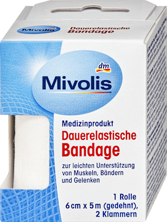La venda elástica permanente Mivolis sirve para el soporte ligero de músculos, ligamentos y articulaciones. La venda es transpirable, elástica y puede fijarse con las grapas incluidas o con la cinta adhesiva Mivolis. Este artículo está disponible en varios colores/diseños. Lamentablemente, no es posible seleccionar un color o diseño específico al hacer el pedido. Este artículo está disponible para pedidos exprés o en nuestras tiendas dm.
