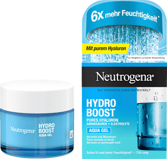 El Neutrogena Hydro Boost Aqua Gel es un cuidado hidratante ligero para piel normal y mixta. La fórmula eficaz combina el complejo de gel de ácido hialurónico para una hidratación intensiva con trehalosa 100% vegetal, para retenerla durante mucho tiempo. Así, el dúo de potencia, ácido hialurónico y trehalosa, proporciona hidratación continua todo el día, siempre exactamente cuando su piel la necesita. La piel queda suave, visiblemente flexible y refrescada. La fórmula ligera es libre de aceite y no obstruye los poros.