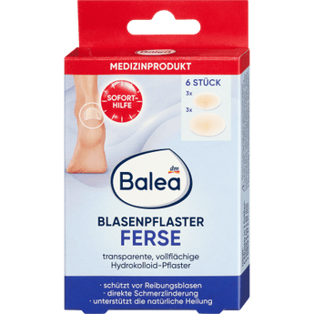 Balea-kantapääntyynyä voidaan käyttää hiertymien, alkavien rakkuloiden ja avaamattomien rakkuloiden suojaamiseen. Läpinäkyvä, koko alueen kattava hydrokolloidilaastari voi tukea luonnollista paranemista.