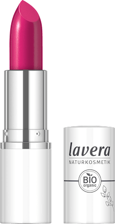 lavera Cream Glow Lipstick sävyssä 08 Pink Universe antaa huulille silkinhohtoisen ja kiiltävän lopputuloksen sekä suojaa niitä kuivumiselta. Intensiivinen väri levittyy helposti ja tarjoaa kermaisen koostumuksensa ansiosta pitkäkestoisen ja miellyttävän käyttökokemuksen jopa kuuden tunnin ajan. Luomu-sheavoi ja luomu-kaakaovoi hoitavat huulia samalla.
