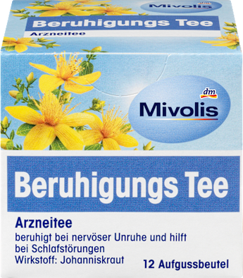 Vaikuttavat aineet: mäkikuisma Käyttöaiheet: Perinteinen sisäinen käyttö Hermostuneen levottomuuden ja unihäiriöiden hoidon tukemiseen Nämä käyttötarkoitukset perustuvat yksinomaan lääkkeen pitkäaikaiseen käyttöön näissä käyttökohteissa. Vaikuttavan aineen pitoisuus: 100 g rauhoittavaa teetä sisältää: mäkikuisma, 100 g Annostusmuoto: Lääkevalmisteen tee, 12 annospussia à 2,0 g = 24,0 g, yksittäin aromisuojattu Tarkka tuotenimike: Rauhoittava tee, lääkevalmisteen tee rauhoittaa hermostunutta levottomuutta ja unihäiriöitä Vaikuttava aine: mäkikuisma