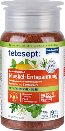 Merisuolapohjainen kylpysuola Lihasten rentoutukseen on erityinen luonnolliseen merisuolaan perustuva koostumus. Miellyttävä tuoksu kutsuu rentoutumaan ja virkistymään, ja se sopii erinomaisesti fyysisen aktiivisuuden jälkeen. Eteeriset öljyt, kuten sitruuna-, rosmariini-, peltominttu-, mänty-, laventeli-, appelsiini- ja neilikkööljyt, tarjoavat erityisiä kylpyhetkiä ja hetken vain itsellesi.