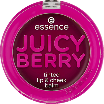 Juicy Berry Tinted Lip & Cheek Balm by Essence hemmottelee poskia ja huulia raikkaalla marjanpunaisella sävyllä ja miellyttävällä marjaisella tuoksulla. pH-reaktiivisten ominaisuuksiensa ja kevyen koostumuksensa ansiosta se sopii täydellisesti luonnolliseen meikkiin ja kaikille ihonsävyille. Lisäksi balsami on helppo levittää sormin.