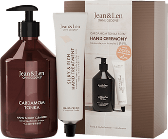 Le coffret cadeau Hand Ceremony de Jean&Len est le choix parfait pour des mains soignées. Ce set contient un nettoyant mains et corps ainsi qu'une crème pour les mains, tous deux au parfum envoûtant de cardamome et tonka. Les ingrédients contribuent à nettoyer la peau en douceur et à la nourrir intensément. Le design élégant fait de ce set un cadeau de Noël idéal pour vos proches.
