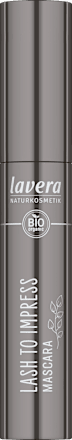 Le mascara lavera Lash to Impress Black offre en un clin d'œil un regard légendaire avec une tenue de 12 h. Fini les yeux de panda grâce à sa formule végane résistante aux frottements, enrichie en huile de ricin bio et en arginine, qui protège et fortifie les cils. Sa texture noire intense et sa grande brosse en forme de sablier apportent un volume ultra aux cils, sans les coller.