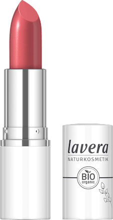 Le Cream Glow Lipstick lavera en teinte 07 Watermelon offre aux lèvres une finition soyeuse et brillante tout en les protégeant du dessèchement. Sa couleur intense s'applique facilement et, grâce à sa texture crémeuse, assure un confort longue durée pouvant aller jusqu'à six heures. Les ingrédients beurre de karité bio et beurre de cacao bio prennent également soin des lèvres.