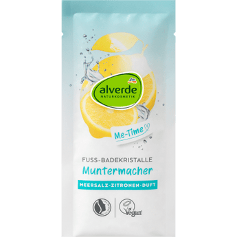 Les cristaux de bain de pieds alverde NATURKOSMETIK avec une formule de soin naturelle et un parfum vivifiant de sel marin et de citron pétillant offrent une expérience de bien-être relaxante dans un quotidien stressant. La formule revitalise les sens et offre une pause rafraîchissante aux pieds fatigués. Les pieds fatigués et sollicités sont nettoyés et détendus en douceur, tandis que les callosités sont adoucies. Pour des pieds doux comme de la soie grâce à la formule nourrissante aux minéraux marins et à l'extrait de citron issu de l'agriculture biologique contrôlée. Formule sans microplastiques ni polymères synthétiques solubles dans l'eau.