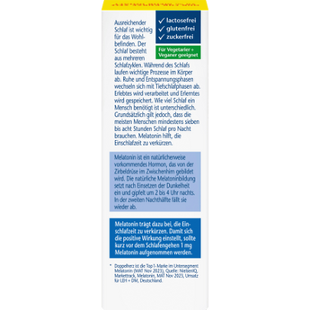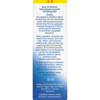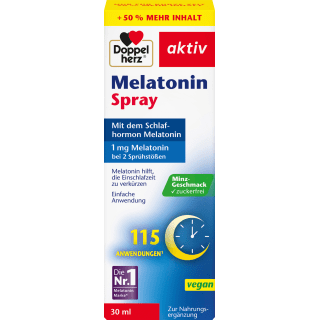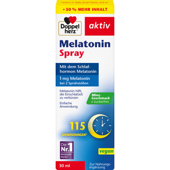 Le spray de mélatonine de la marque Doppelherz peut aider à réduire le temps d'endormissement grâce à l'hormone du sommeil qu'il contient, lorsqu'1 ml de mélatonine est pris peu avant le coucher. La mélatonine naturelle est une hormone corporelle produite dans l'encéphale humain après le début de l'obscurité.