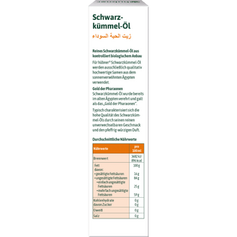 L’huile de cumin noir hübner® est parfaite pour relever le goût de vos préparations. Elle peut aussi se consommer pure (par exemple 1 à 2 cuillères à café par jour).