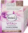 La crème de jour raffermissante Vital+ de Balea peut, grâce à la combinaison d’actifs composée d’un complexe de vitamines et de peptides, de calcium et de Vitacell®, améliorer la résistance de la peau, renforcer sa structure et réduire la profondeur des rides*. Le panthénol et l’huile d’amarante de haute qualité hydratent durablement la peau et la rendent douce et souple. De plus, elle peut prévenir le relâchement cutané et la peau gagne en densité, en force et en fermeté. Le facteur de protection solaire 15 et la protection UVA peuvent également protéger la peau du vieillissement prématuré causé par la lumière.