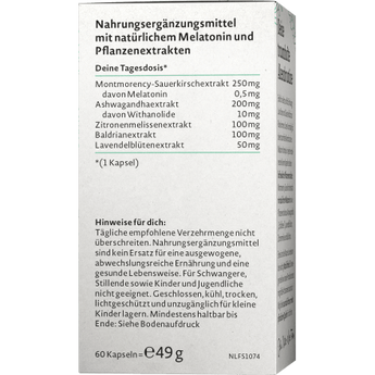 Les capsules Complexe Mélatonine de Nature Love sont composées de cinq extraits de plantes spécialement sélectionnés et parfaitement harmonisés, dont un véritable extrait de cerises Montmorency, qui contient de la mélatonine naturelle. De plus, les capsules végétariennes contiennent des ingrédients choisis tels que l'Ashwagandha, les fleurs de lavande, la mélisse et la valériane.