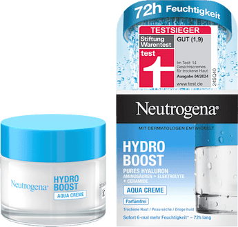 La Neutrogena Hydro Boost Aqua Crème est un soin hydratant sans parfum pour peau sèche. La formule efficace associe le complexe gel d'acide hyaluronique pour une hydratation intense à 100% de tréhalose d'origine végétale afin de la maintenir sur la durée. Ainsi, le duo puissant, hyaluronate et tréhalose, assure une hydratation continue toute la journée — exactement quand votre peau en a besoin. La peau est lisse, visiblement souple et rafraîchie. La formule soignante est sans huile, sans parfum et ne bouche pas les pores.