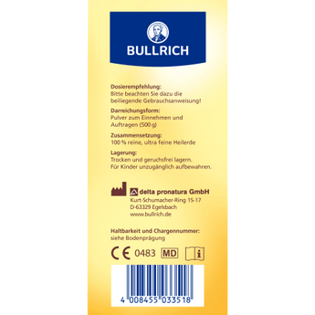 La poudre de terre médicinale Bullrich est un produit naturel minéral pur. Elle est extraite de loess issu de l’ère glaciaire, traitée avec soin et finement moulue. Plus la terre médicinale est finement moulue, mieux elle absorbe différentes substances.