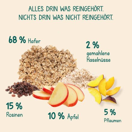 Verzehrhinweis: Bitte halte folgende Zubereitungsanleitung – für die Gesundheit deines Kindes – genau ein: Bereite die Nahrung vor jeder Mahlzeit frisch zu und füttere sie sofort. Verwende Nahrungsreste nicht wieder. Erwärme Kindernahrung nicht in der Mikrowelle (Überhitzungsgefahr) und überprüfe die Temperatur vor dem Füttern. Fülle 35 g Porridge (ca. 6 EL) in ein Schälchen. Füge 90 ml Milch hinzu. Verrühre das Porridge mit enem Löffel. Tipps: Ab 1 Jahr kannst du das Porridge auch mit deiner Milumil Kindermilch zubereiten. Statt Milch kannst du auch 90 ml Wasser verwenden. Warm oder kalt zubereiten - ganz nach eurem Geschmack. Du kannst auch die Flüssigkeitsmenge variieren - so wie es dein kleiner Entdecker mag. Entdecke viele leckere Rezepte auf unserer Webseite.