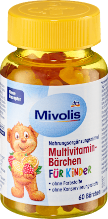 Multivitaminbjörnarna för barn från Mivolis är goda fruktgummibjörnar som är speciellt utvecklade för barn och berikade med vitaminer. De färgglada björnarna innehåller vitaminerna B1, B2, B6, B12, C och E samt pantotensyra, biotin och niacin. Det är dock inte bara innehållet utan även den otroligt goda smaken av citron, apelsin och hallon som gör fruktgummibjörnarna till något alldeles extra.