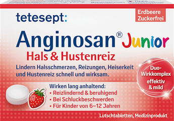 Anginosan Junior halstabletter utan socker från tetesept lindrar snabbt och effektivt halsont, irritation, heshet och hostreflex hos barn från 6-12 år. Det apotekarutvecklade duo-verkkomplexet innehåller ett växtbaserat specialextrakt från isländsk mossa och stödjer därmed den naturliga läkningen av slemhinnorna. Denna effektiva och milda verkningsprincip är särskilt lämplig för halsont hos barn och är väl tolererad. Denna artikel finns tillgänglig för expressbeställningar eller i våra dm-butiker.