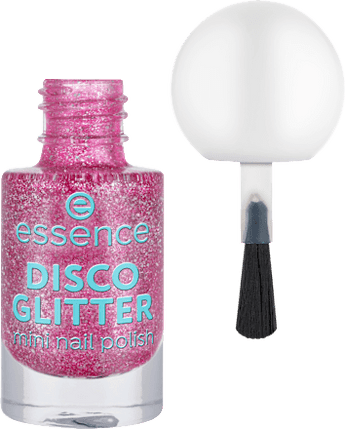 DISCO GLITTER Mini-nagellack i nyansen 08 från Essence ger med sitt glittrande, klara rosa omedelbart färg och skapar en livfull finish. Berikad med intensivt glitter ger detta högtäckande nagellack en iögonfallande look som drar allas blickar till sig. Oavsett om det är vid speciella tillfällen eller festliga kvällar är detta nagellack den perfekta följeslagaren för att få naglarna att glänsa och ge varje outfit det lilla extra. Ett måste för alla som gillar att stå i rampljuset.