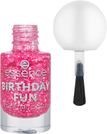 Med essence Birthday Fun Mini-nagellack i färgnummer 05 kan varje dag bli en liten fest. Den lätta glittrande effekten i rosa nyanser ger naglarna en festlig look. Den smidiga nagellacksflaskan kan appliceras ensam eller som topplack över favoritfärgen. Den lekfulla förpackningen med rund kork fulländar produkten och gör den till en perfekt följeslagare för speciella tillfällen.
