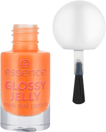 GLOSSY JELLY Mini nagellack i färgen 03 skapar en strålande lysande orange ton på naglarna som omedelbart drar till sig uppmärksamhet. Med sin geléliknande, halvgenomskinliga textur kan färgen byggas upp efter önskemål, där varje lager ger mer intensitet. Denna flexibilitet gör det möjligt att anpassa färgintensiteten helt efter önskemål. Dessutom tillåter den speciella formulan en enkel toning mellan olika färger, vilket ger liv åt kreativa nageldesigner. Perfekt för alla som vill leka med sin look och ge naglarna en fräsch, trendig accent.