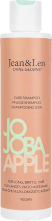 Schampot Jojoba Äpple 300 ml från Jean&Len får långt, skadat hår att se friskare och starkare ut igen. Det känns otroligt bra och doftar tack vare det innehållna äppelkärnextraktet som ett krispigt äpple.